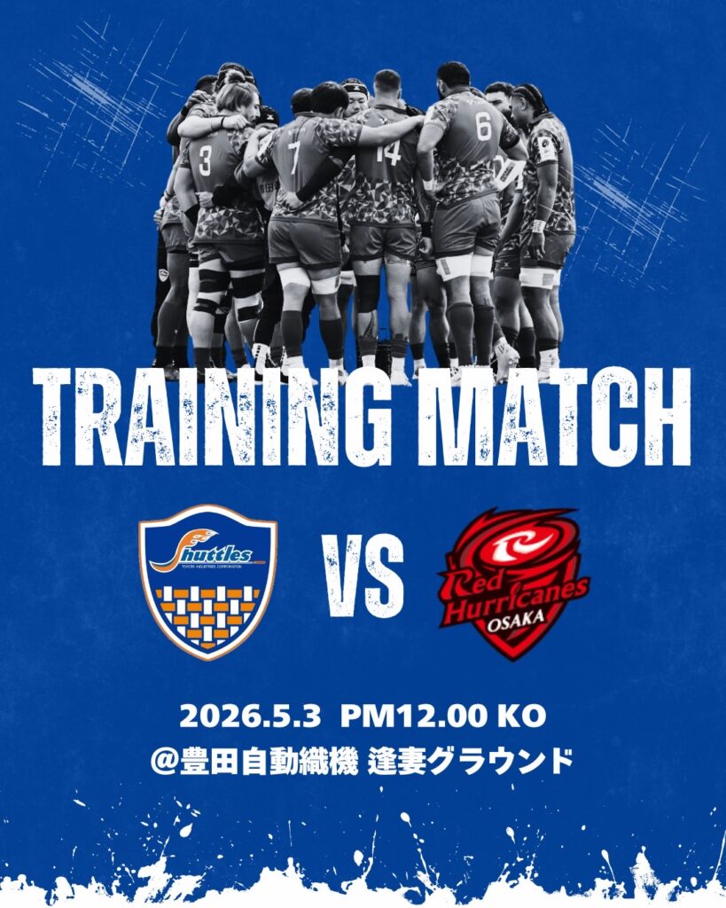 豊田自動織機シャトルズ愛知は、5月3日(日)に豊田自動織機 逢妻グラウンドでレッドハリケーンズ大阪とトレーニングマッチを行います。